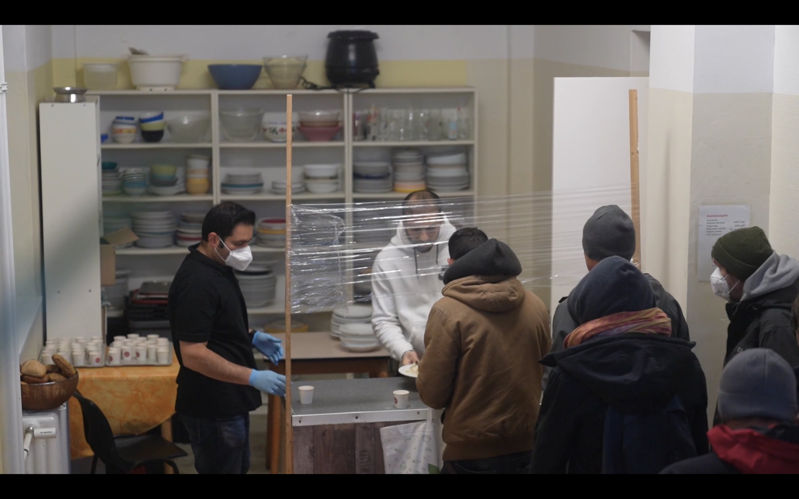 Du hilfst bei der Vorbereitung und Essensausgabe in einer Küche für obdachlose Menschen.